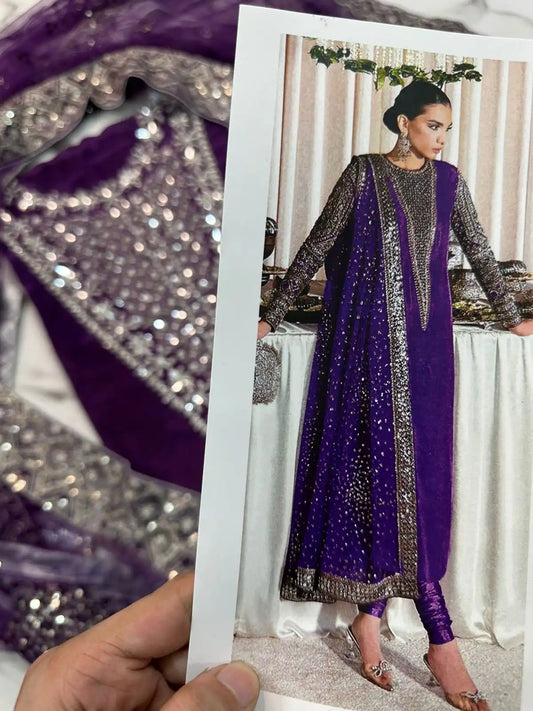 4PC PURPLE RAW SILK FANCY SUIT FULLY EMBROIDERED WORK