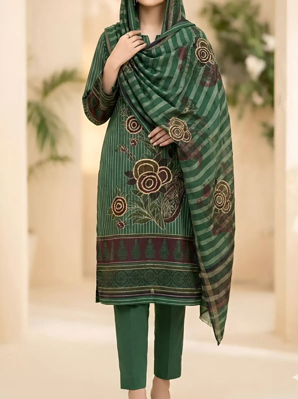 Pure lawn 3PC suit with elegant gota work, ensuring style with customer satisfaction