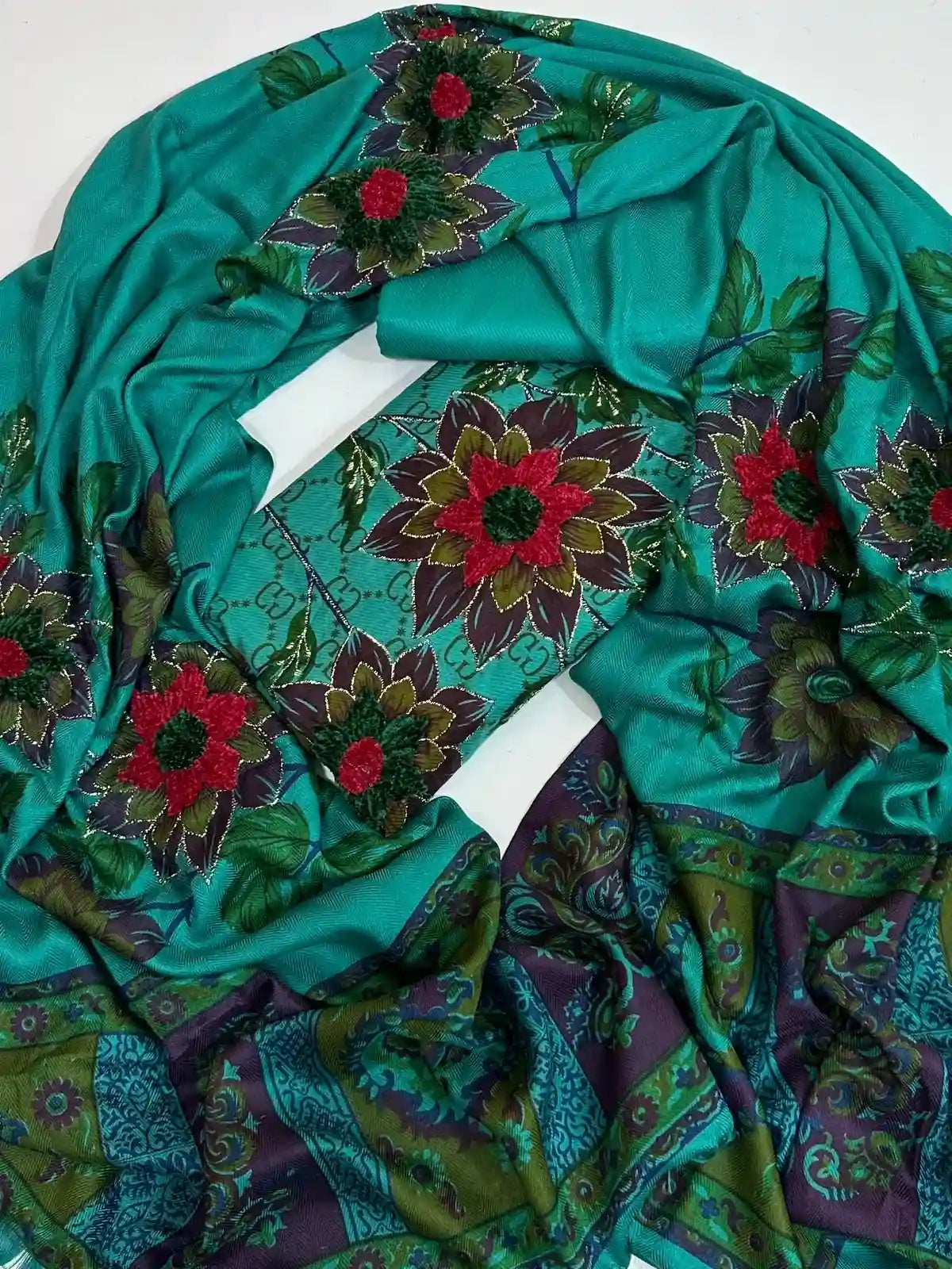 SHAWL : Pure Wool Shawl Fully velvet zarri Work 2.5M