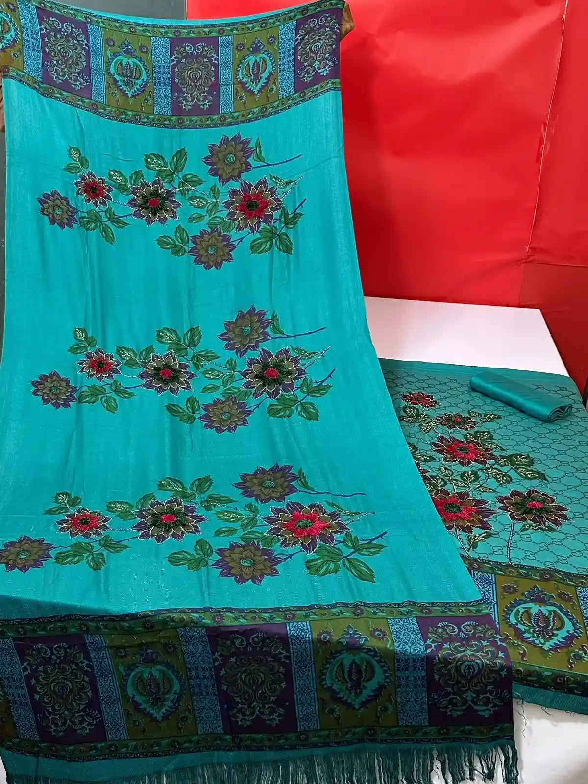 3PC PURE MARINA WOOL SHAWL HEAVY VELVET ZARRI WORK