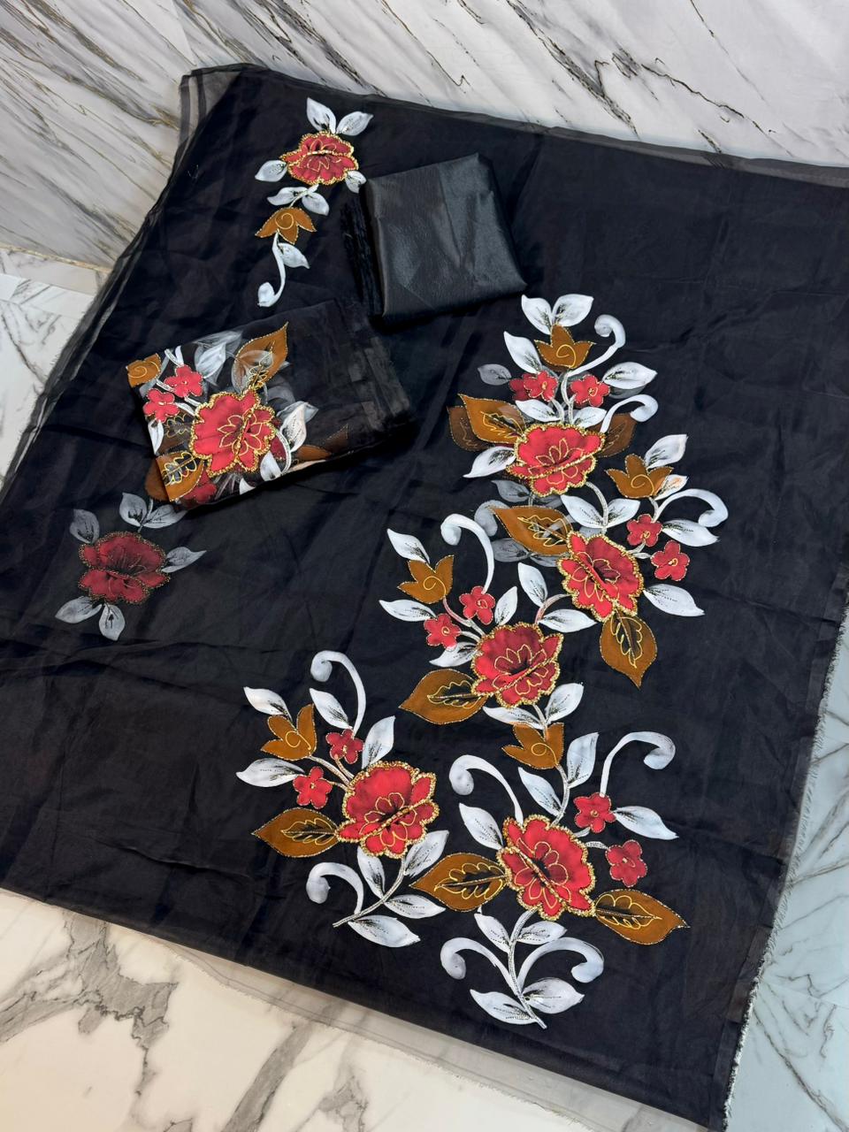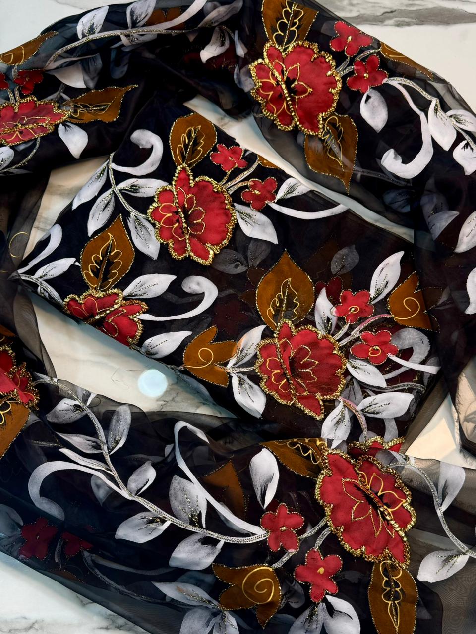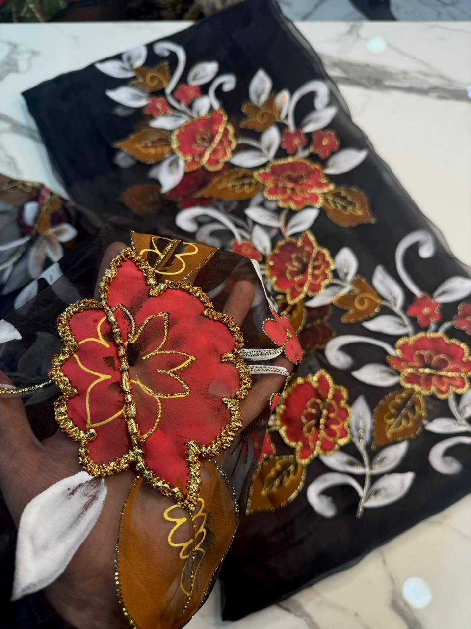 4PC BLACK ORGANZA HEAVY HAND PAINT FULLY GOTTA WORK