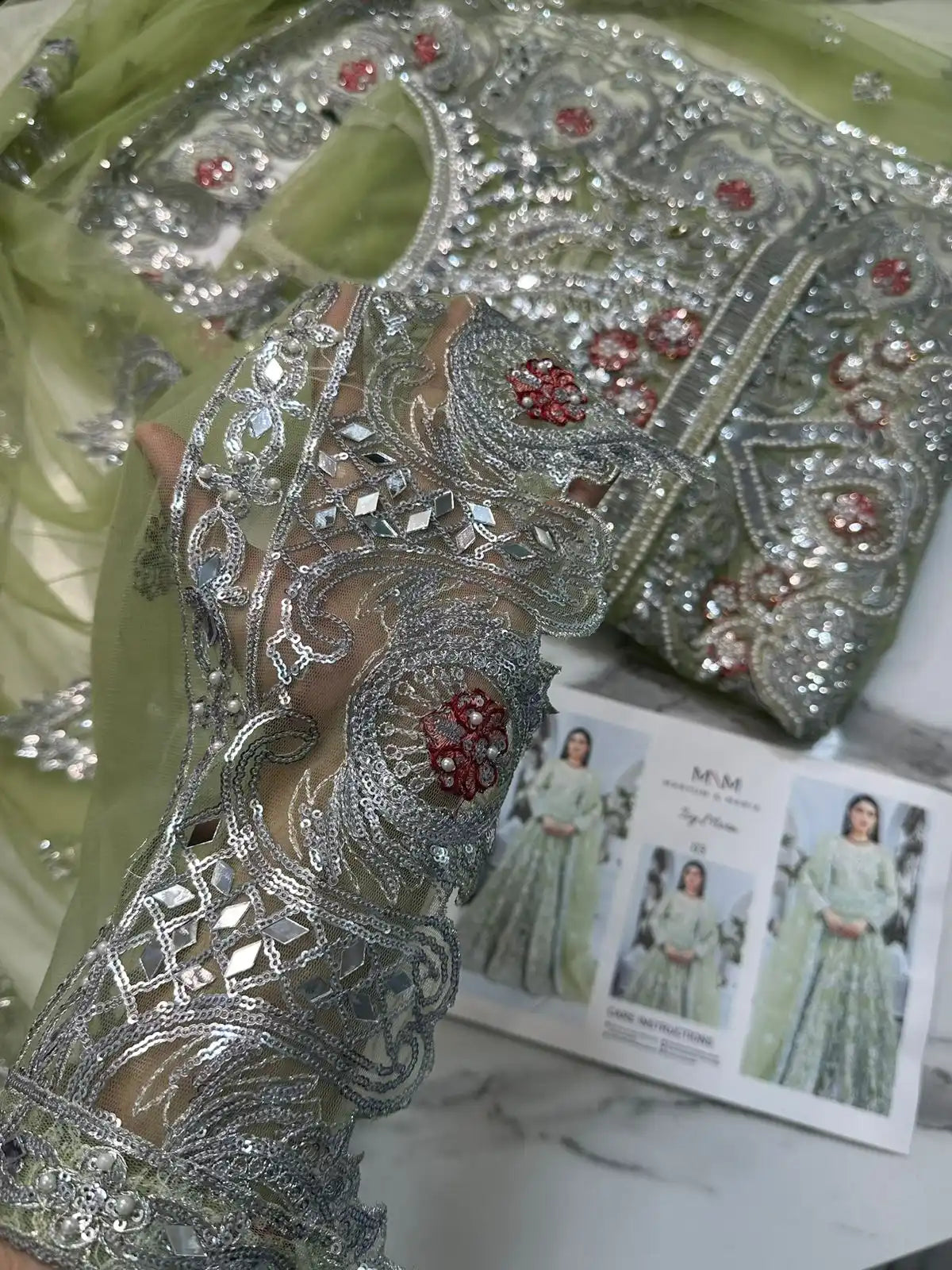 FABRIC: Shirt Pure Net | Dupatta: Pure Net | Trouser: Pure Raw Silk |