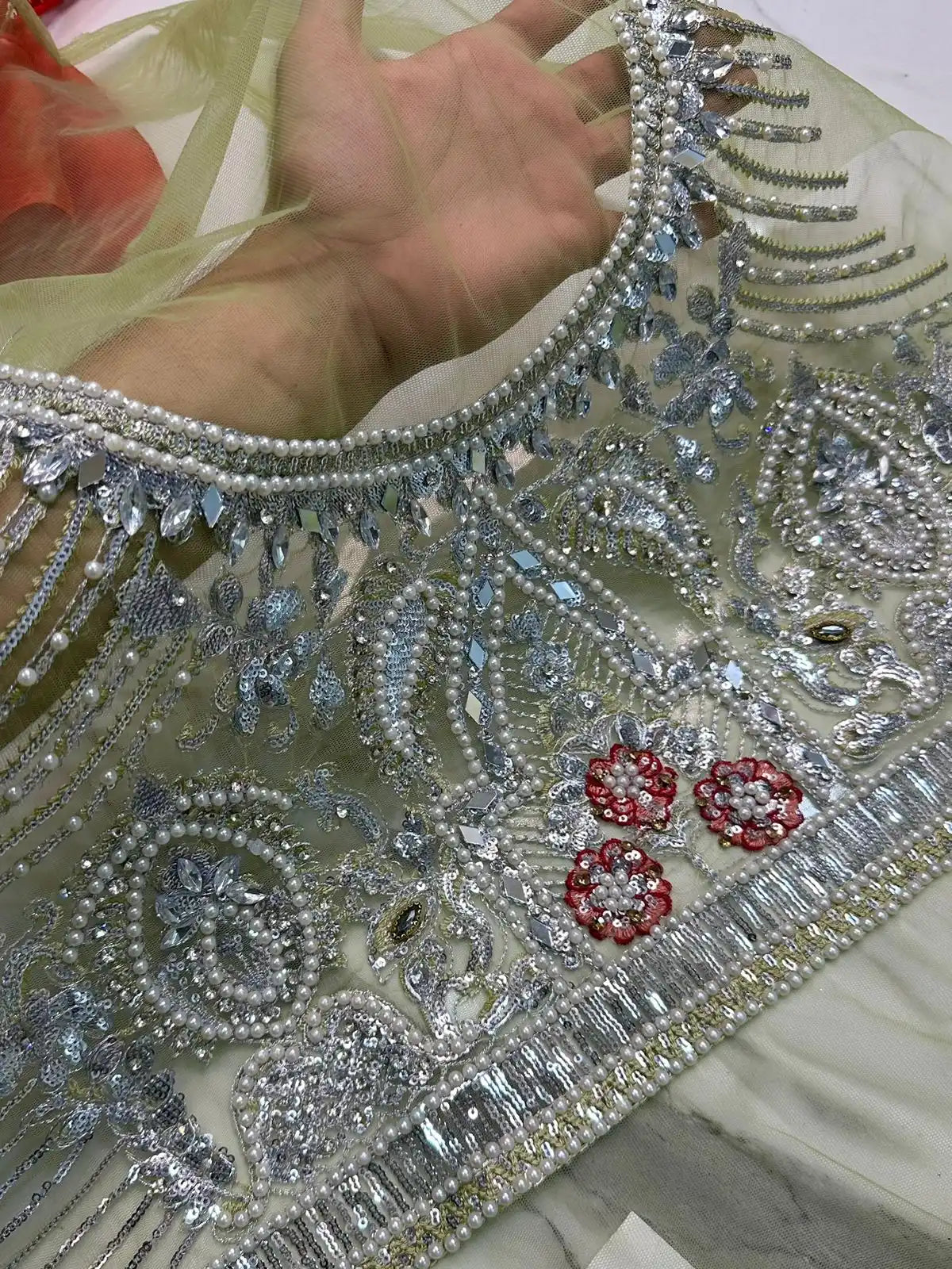 • 🌿 Pearl Beads Detailing