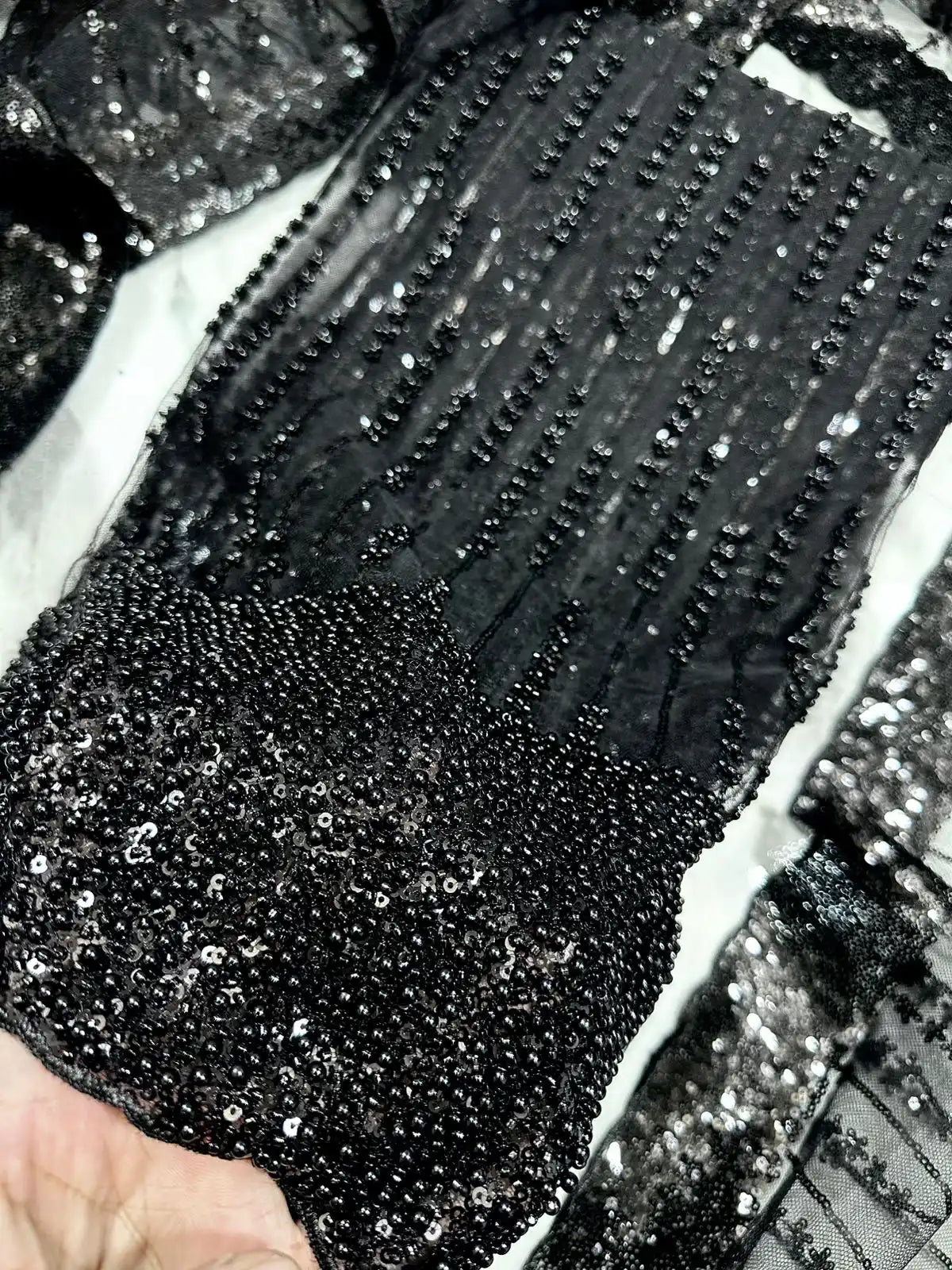 ✨ Heavy 3D Hand Embellishment (dense pearls + sequins cluster)
