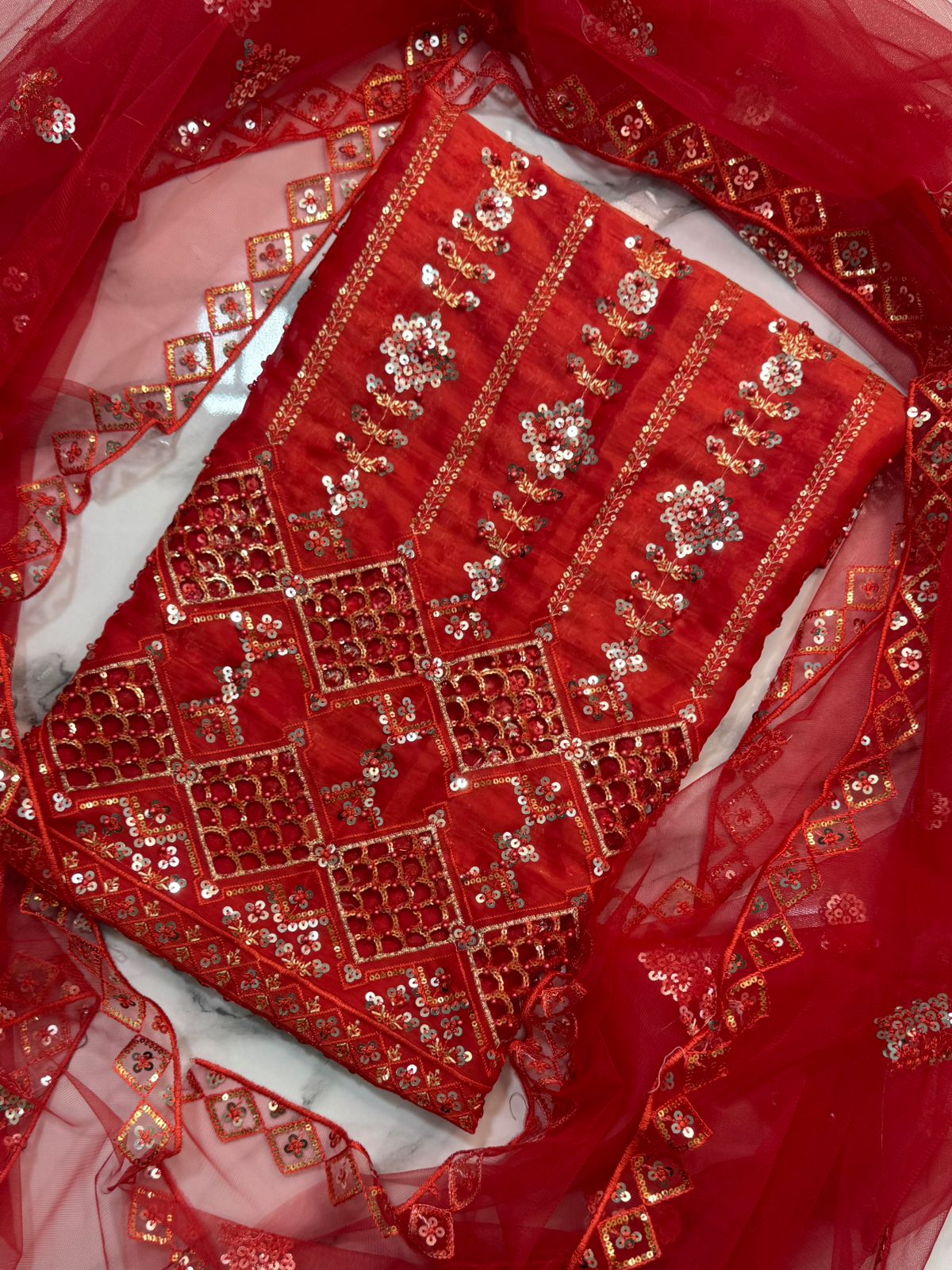DUPATTA: Beautiful Silver & red Mixture Color Pure Net Dupatta Fully Embroidery Work
