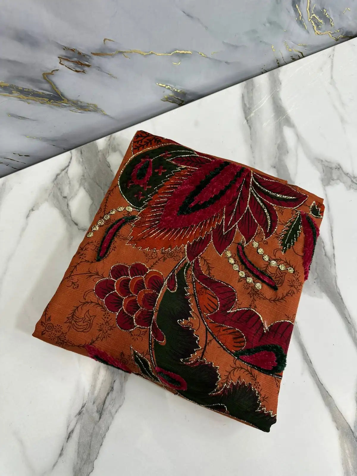 👚 Shirt (2.75 Gaz):Made with pure premium khaddar fabric, this shirt features beautiful velvet embroidery ✨ blended with fine screen printing 🎨.