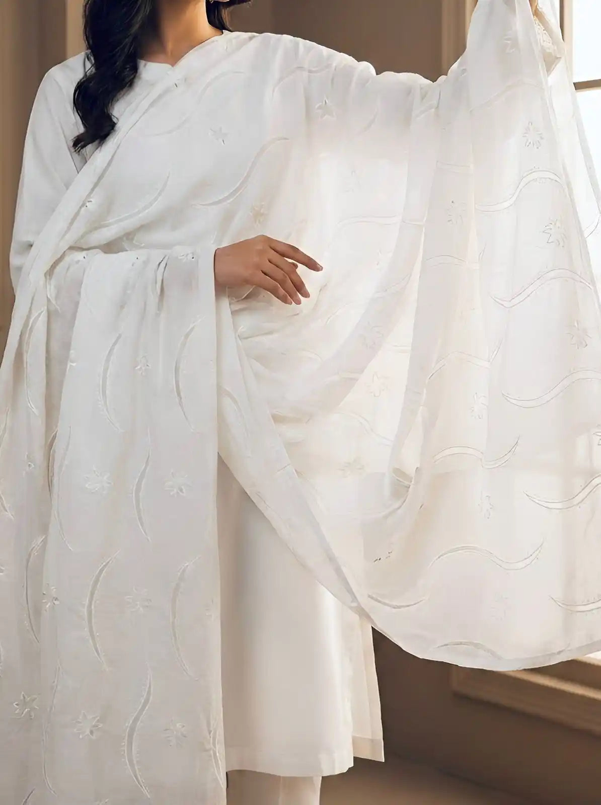 Its timeless beauty and refined texture make it perfect for both formal and casual occasions. Whether it's an elegant evening event or a casual day out – this white Dupatta will always give you a classy and graceful look.